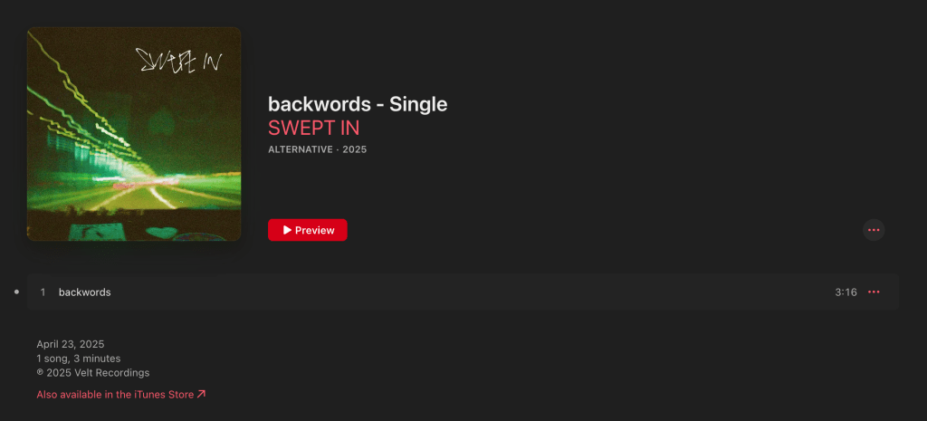 Cover Art for SWEPT IN single – backwords , 04/03/25
