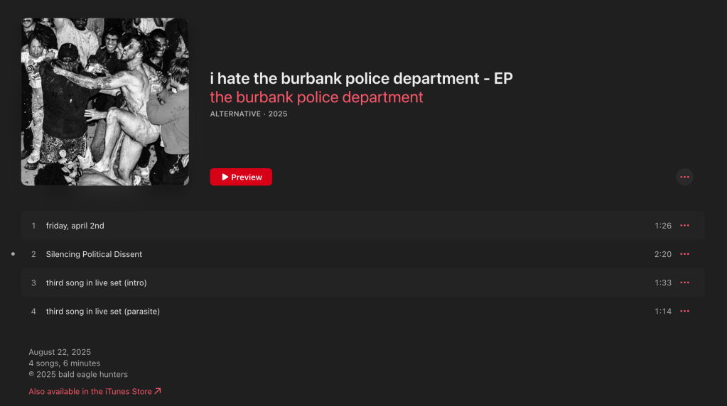 Cover Art for the burbank police department EP – i hate the burbank police department – 08/22/25